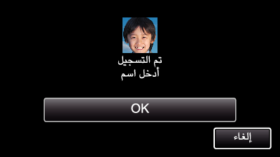 يؤدي الضغط فوق ”OK“ إلى تسجيل الوجه المسجل وظهور شاشة إدخال الاسم.