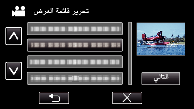 لحذف الفيديو في قائمة التشغيل (الصف السفلي)، اضغط على الفيديو، ثم اضغط على ”إلغاء“.