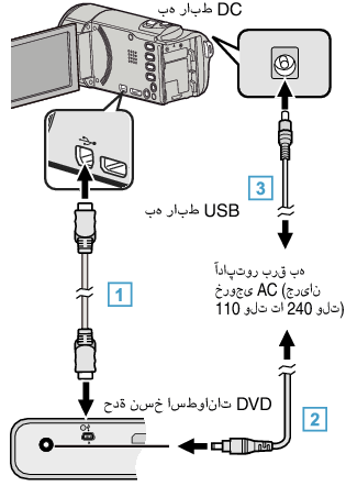 قم بتوصيل كبل USB المرفق بناسخ اسطوانات DVD.