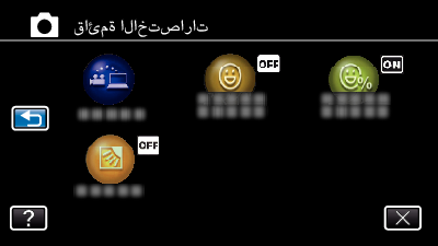 يمكنك تهيئة إعدادات مختلفة من الوظائف المستحسنة في وضع التسجيل الخاص بالفيديو/الصور الساكنة باستخدام القائمة المختصرة.