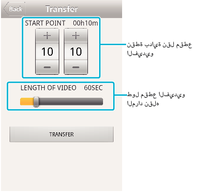 اضغط ”+“”-“ لتحديد نقطة بداية نقل مقطع الفيديو (دقائق/ثواني).