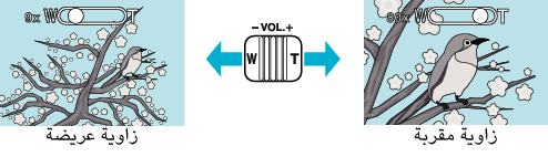 يمكن أيضًا استخدام زر الزوم (T/W) على الشاشة التي تعمل باللمس للتقريب.