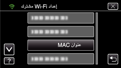 يظهر عنوان MAC الخاص بالكاميرا. (الموجود أعلاه يعرض العنوان أثناء الاتصال المباشر، في حين يعرض الوارد أدناه عنوان MAC عند الاتصال بنقطة اتصال).