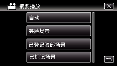 选择以下的摘录播放类型。选择“自动”时,视频被缩短到预设的时长后进行播放。