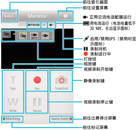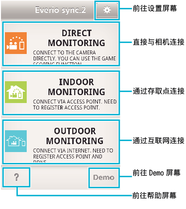 在iPhone/iPad连接手机网络时不能使用iPhone/iPad“Everio sync. 2”。要使用此功能,请经由Wi-Fi连接摄像机或存取点。