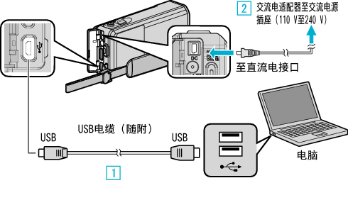 用USB电缆连接摄像机和电脑时,录好的媒体是止读的。