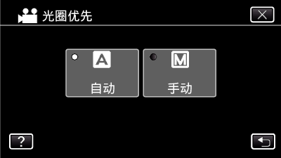 如果模式是 智能自动,则轻按录制屏幕上的 ,显示模式切换屏幕。轻按 ,把录制模式切换到手动。