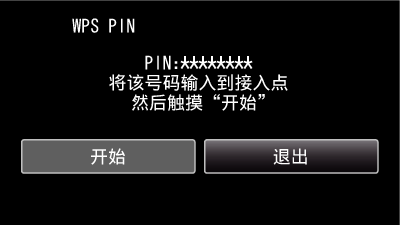 输入摄像机上显示的接入点(无线LAN路由器)PIN代码。