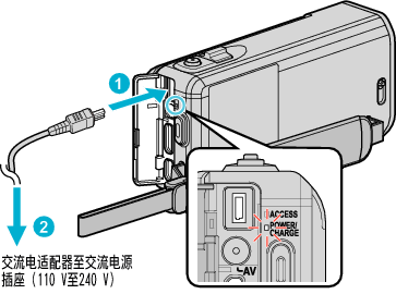 交流电适配器连接期间,您可以录制或播放视频。(录制或播放过程中无法给电池充电。)