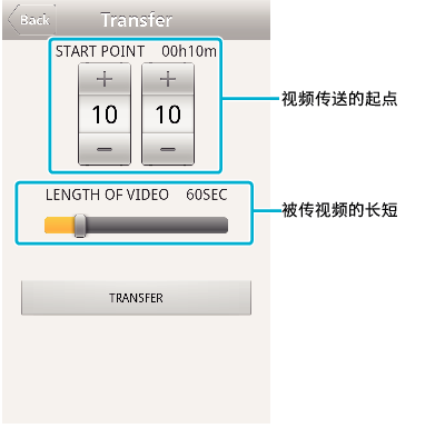 轻按“+”“-”,设定视频传送的起点(分/秒)。