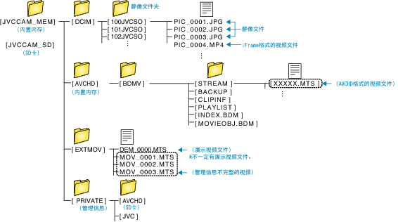 在内置内存和SD卡上,按如下方式创建文件夹和文件。