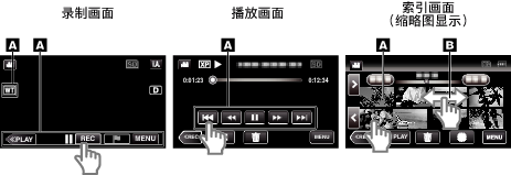 根据使用中的模式,在触屏上显示图标操作按键、缩略图、菜单项。