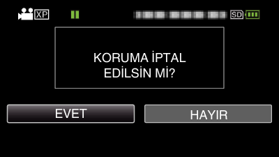 Videoların korunup korunmadığını ya da korumanın kaldırılıp kaldırılmadığını kontrol etmek için, “EVET„ öğesini seçip OK öğesine basın.
