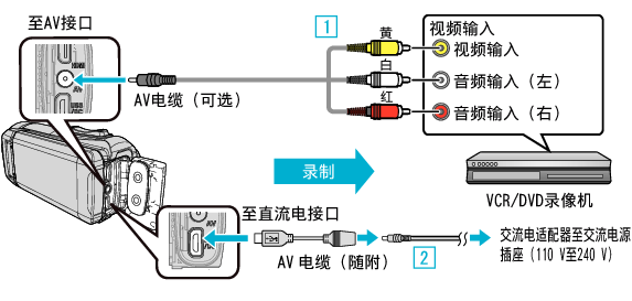 连接VCR,即可用标准画质复录视频。