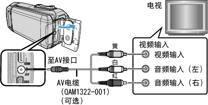 要在电视上播放视频,请将AV电缆(可选:QAM1322-001)连接至本机的AV端子。