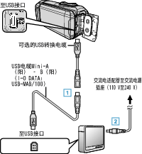 请准备一条适用于您的产品的USB电缆。可选的USB转换电缆(QAM1588-001:Mini AB 阴– Micro A 阳)可与我们的可选USB转换电缆(QAM0852-001:A 阴– Mini B 阳)一起使用。