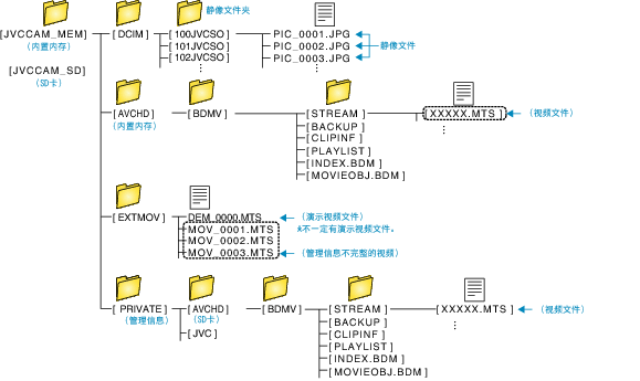 在内置内存和SD卡上,按如下方式创建文件夹和文件。