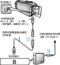 要使用USB外部硬盘驱动器附带的USB电缆,需购买以下的USB转换电缆(另售)。