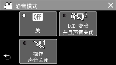 静音模式是用于关闭操作音的功能。屏幕也可以根据设置变暗。使用此模式可以安静地录制如演奏会、演示等场合。