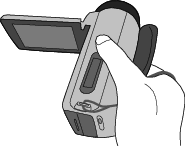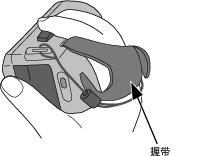 在如上述步骤 1 所示穿过食指之后,将其余的四根手指穿过握带并抓住摄像机。