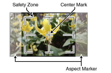 Les affichages du marqueur et de la zone de sécurité sont utiles pour vous aider à déterminer l’angle de vision de l’image selon les fins de la prise de vue.