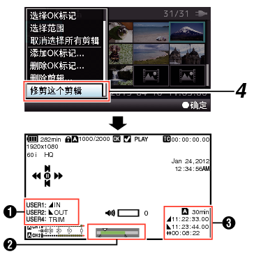 您可以在SD卡中提取(修剪)一个已录制剪辑中您所需要的部分。