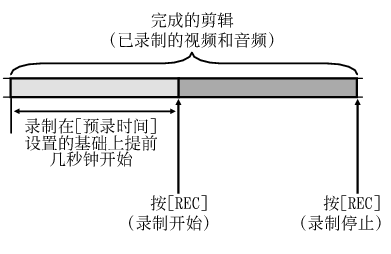 )模式下开始实际录制时,您可以在[预录时间]设置的基础上提前几秒钟开始录制。