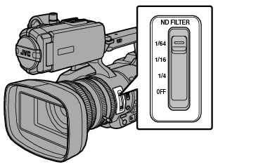 TOP根据物体亮度进行调整。开关位置发生变化时,选定的ND滤光片位置会显示在LCD显示屏和取景器屏幕上。