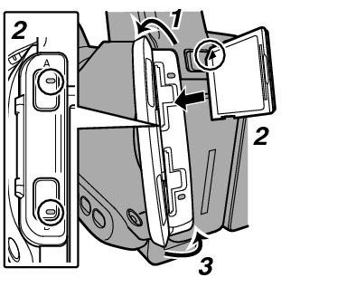 为了录制和回放视频/音频,本摄像机配置了两个卡槽(卡槽A和B)。