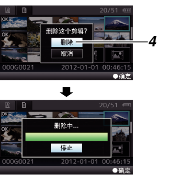 [所有剪辑]。确认删除的屏幕出现。