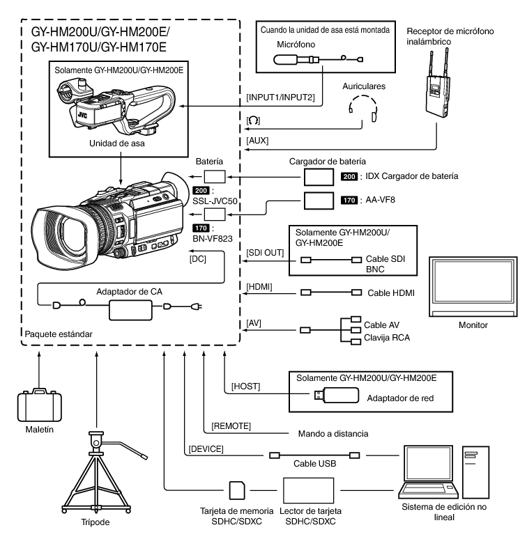GY-HM170U/GY-HM170E no viene con la unidad de asa.Para más detalles sobre la adquisición de la unidad de asa, contacte con los proveedores locales en su área.
