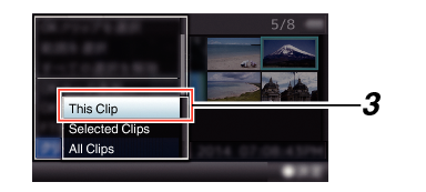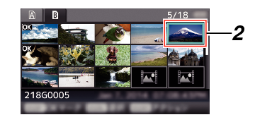 Mantenga pulsado el botón de selección [MODE] en modo cámara para acceder al modo soporte. Aparecerá una pantalla con vistas en miniatura de los clips grabados en la tarjeta SD.