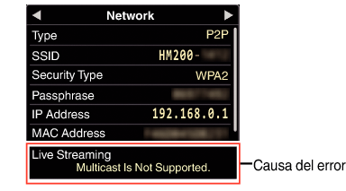 , podrá ver los detalles del error en la pantalla [Network] de la pantalla de estado.