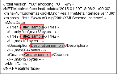 Edite los elementos de etiqueta <Title1><Title2><Description><Creator> con el editor XML. (se indican en el cuadro inferior)