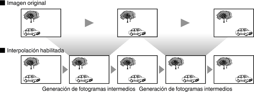 En algunas escenas, la interpolación puede provocar la distorsión de la imagen. En este caso, ajuste como “Apagado”.