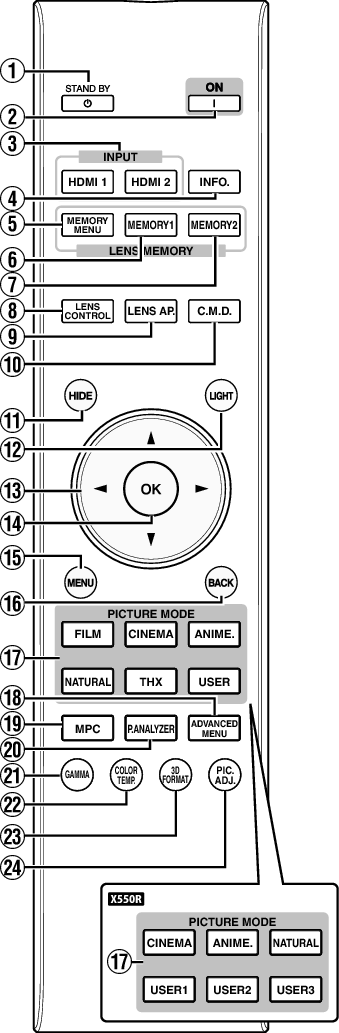 Cambia el Modo de imagen a [FILM]*1, [CINEMA], [ANIME.], [NATURAL], [THX]*1, o [USER]*2. (LINK)