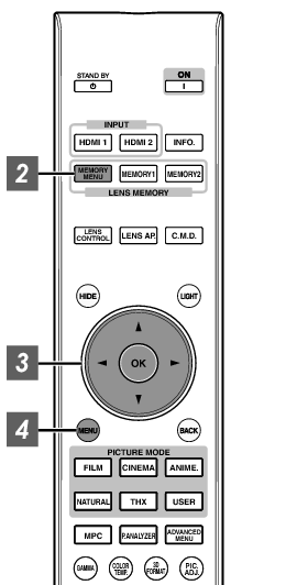 La MEMORIA1 y 2 puede recuperarse igualmente usando las teclas directas del control remoto.