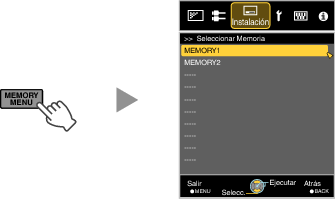 En un estado en el que no se haya guardado ninguna configuración de ajuste (valores de fábrica), solo se mostrará “Guardar Memoria”.