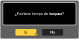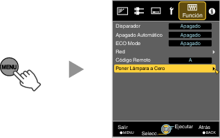 TOPReinicialización del tiempo de uso de la lámpara desde la pantalla de menús