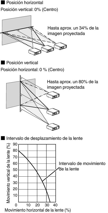 El desplazamiento vertical máximo varía dependiendo de la cantidad de desplazamiento horizontal. Del mismo modo, el desplazamiento horizontal máximo también cambia en función de la cantidad de desplazamiento vertical.