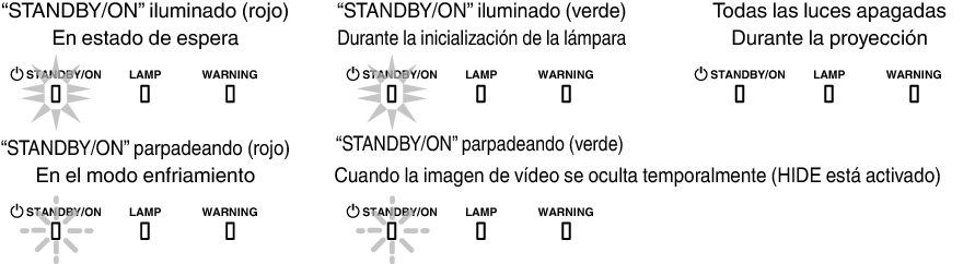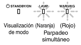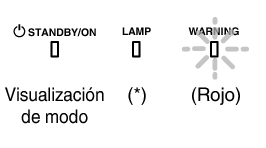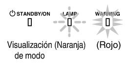Puede conocer los detalles de una advertencia a través de las visualizaciones (repetidas) de los indicadores “WARNING” y “LAMP”. El indicador “STANDBY/ON”, que muestra el modo de funcionamiento de la unidad, se muestra de forma simultánea tal y como se ha descrito anteriormente.