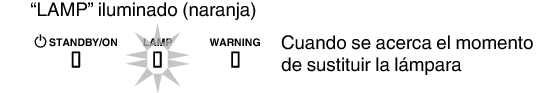 (*) Si se ha superado el tiempo programado para la sustitución de la lámpara, es posible que se ilumine el indicador.