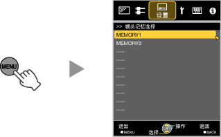 在未保存调整设置的状态下(出厂默认设置),只显示“镜头记忆保存”。