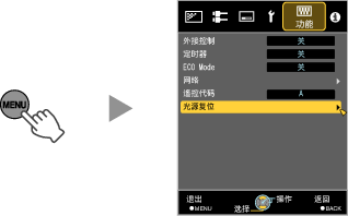 在您已更换灯泡后重置灯具使用时间。它提供了灯具更换的估算时间