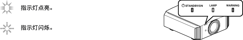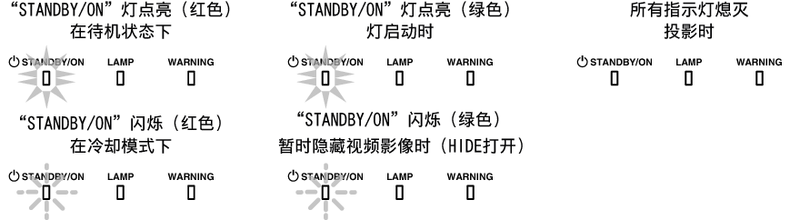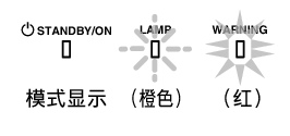 使用“LAMP”指示灯常亮/闪烁进行显示。“STANDBY/ON”指示灯如上所述同时显示,它表明本机的操作模式。