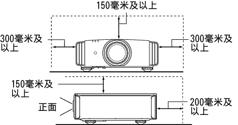 本机发热量较大,设计为通过吸入冷空气对光学组件进行降温。在以上位置使用本机可能导致灰尘附着在光路上,从而造成影像颜色变深或阴暗。