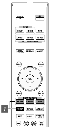也可按“影院”、“HDR”或“自然”键直接设置图像模式。