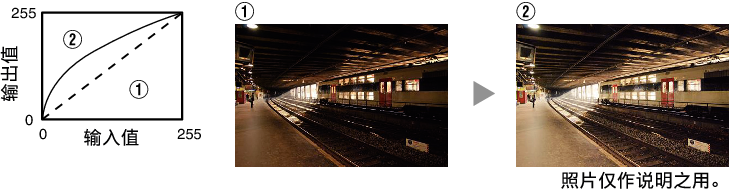 您也可以通过按[MENU]键显示菜单后选择“图像调整” “伽玛”来执行设置。